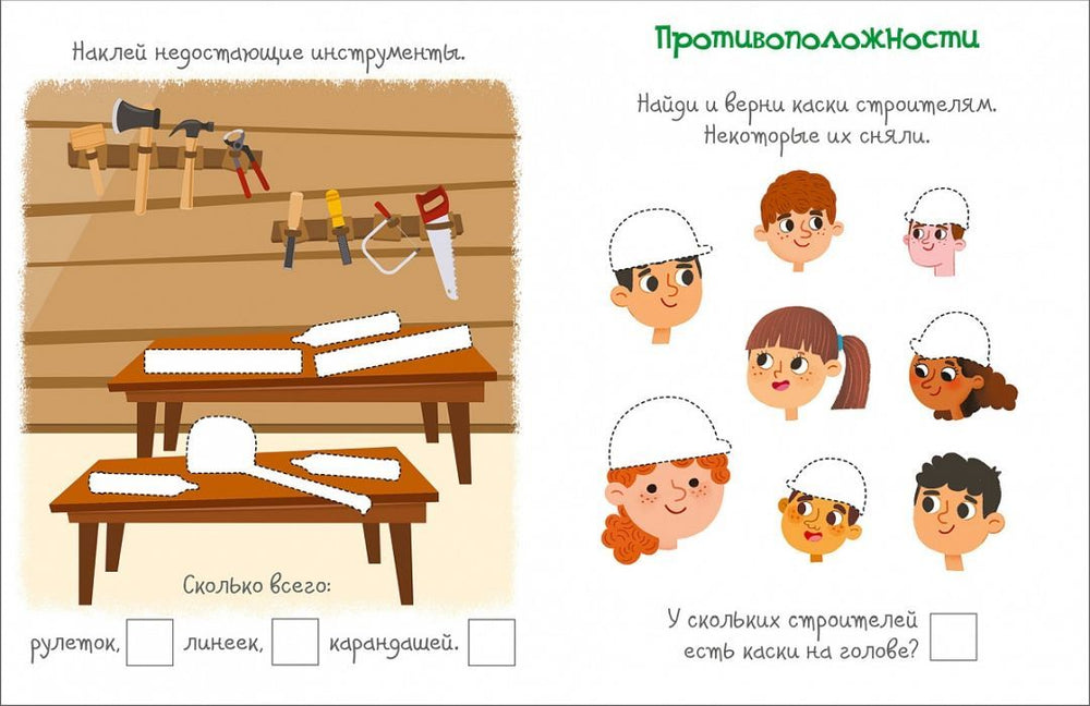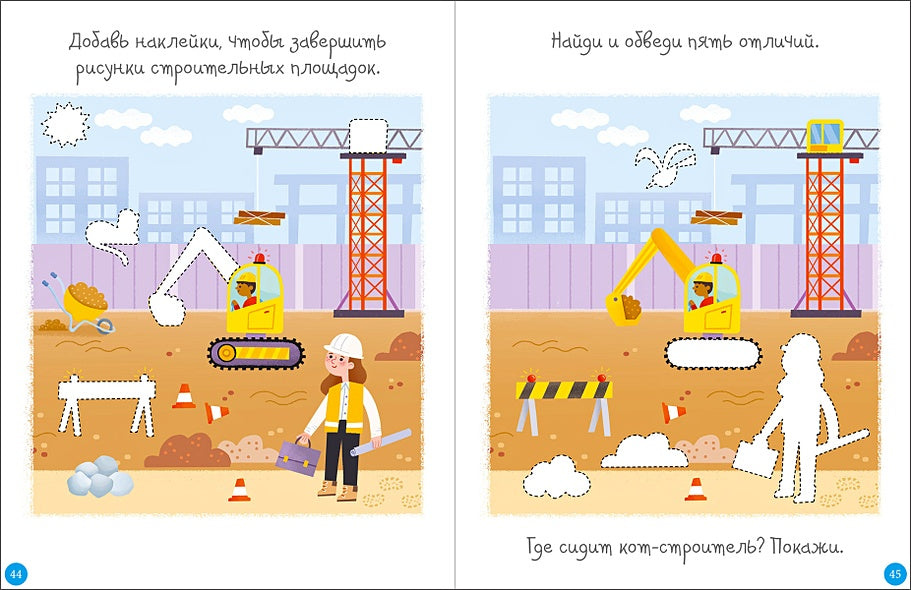 Яркие и понятные рисунки делают выполнение заданий доступным и интересным, а разнообразие строительной техники и городских объектов расширяет кругозор малышей и дошкольников.