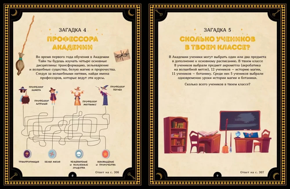 Вместе с заданиями ты сможешь не только потренировать ум, но и стать настоящим начинающим волшебником! Книга содержит 300 загадок для развития мышления и творческого подхода к решению задач, выполненных в стиле волшебства и магии.