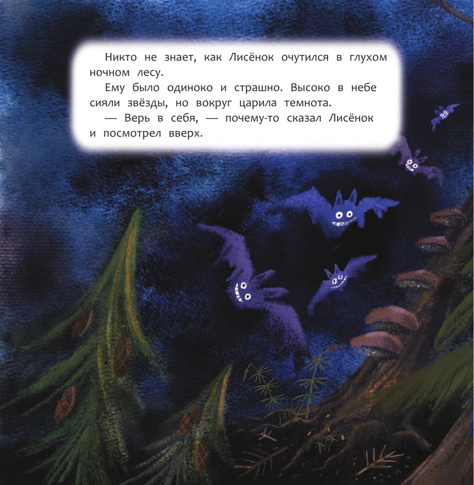 Книга "Верь в себя" авторства Светланы Рябовой рассказывает трогательную историю маленького Лисёнка, который очутился в тёмном ночном лесу в полном одиночестве и страхе.
