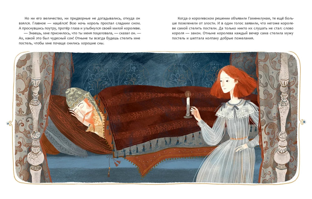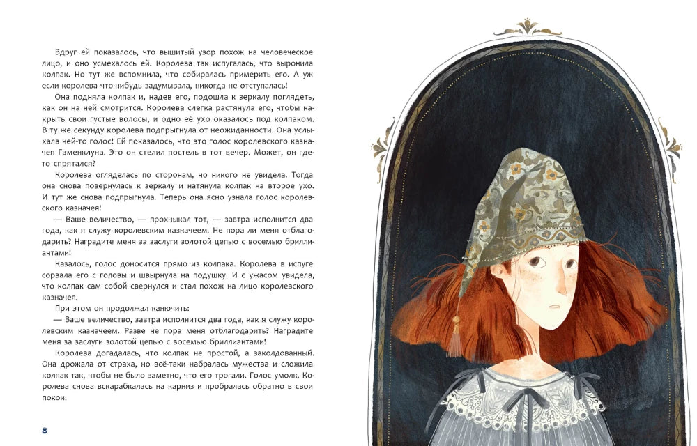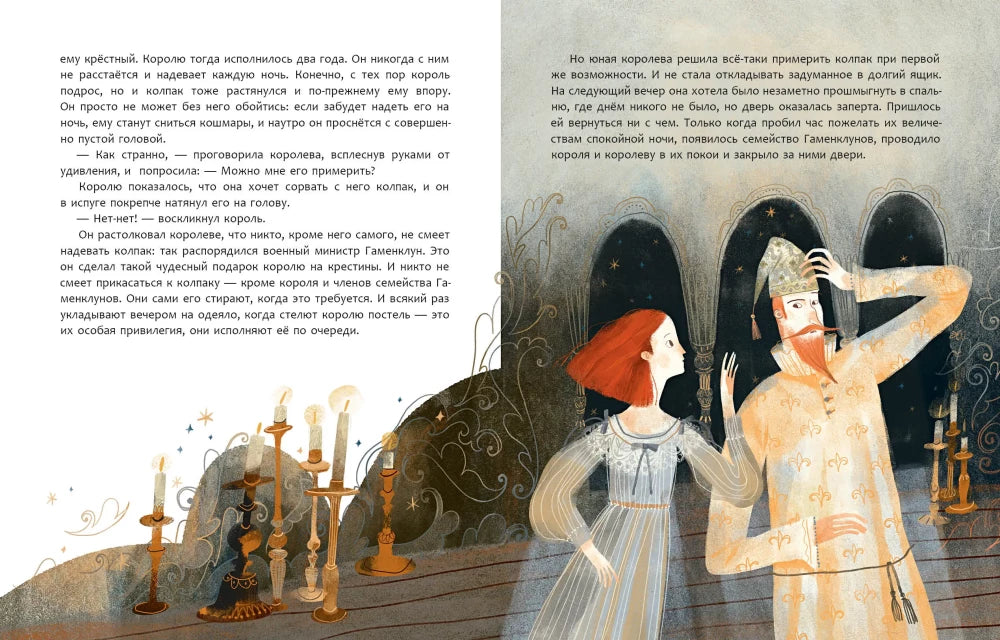 Однако молодая королева решает примерить колпак и раскрыть его тайну. Она обнаруживает, что колпак вовсе не простой и обладает волшебством, связанным с казначеем Гаменклуном. История наполнена интригой, дружбой и магией, учит уважению, заботе и внимательному отношению к близким.
