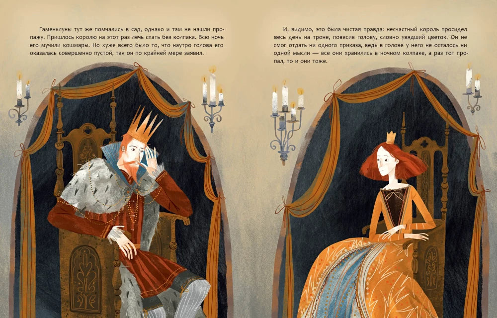 С самого детства король носит этот колпак, который помогает ему видеть хорошие сны и сохранять спокойствие ночью. Но никто, кроме него и семьи Гаменклунов, не смеет прикасаться к волшебному предмету. Все жители королевства с уважением выполняют эту традицию и заботятся о короле.