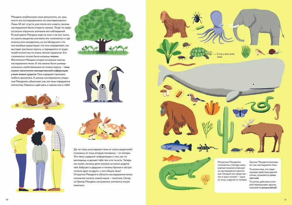 В книге доступно объясняется роль генов и хромосом, а также процесс образования половых клеток и деления клеток. На примерах из живого мира, от растений до животных, демонстрируется, что гены есть у всех живых существ и они несут информацию о внешних признаках и особенностях организма.