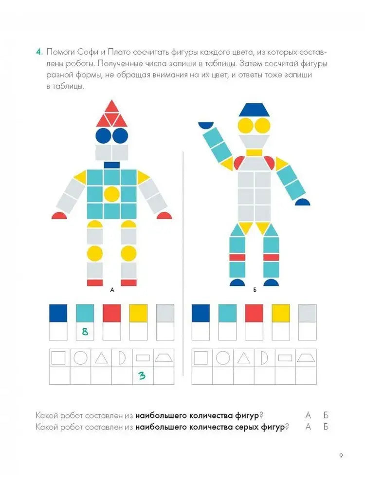 Простые и яркие иллюстрации привлекают детей и делают процесс обучения занимательным и доступным. Ребенок самостоятельно помогает героям Софии и Плато решать логические задачи, считая, сравнивая и выделяя фигуры. Такой подход развивает не только мышление, но и творческие способности.