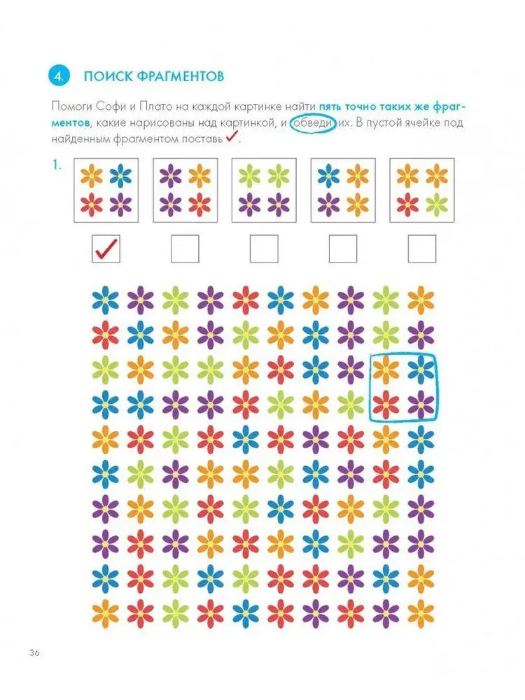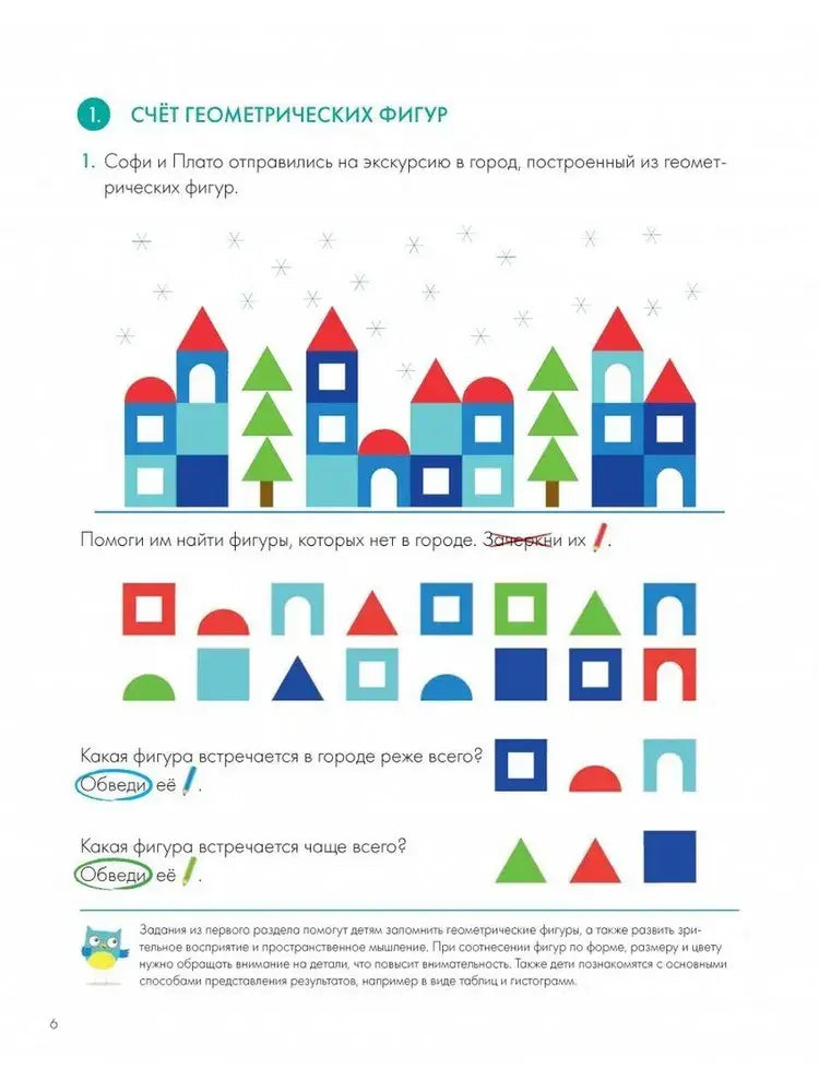 В книге собраны разнообразные упражнения, которые развивают зрительное восприятие, пространственное мышление и умение различать фигуры по форме, цвету и размеру. Задания способствуют внимательности и учат работать с таблицами и гистограммами - полезными инструментами для анализа и систематизации информации.