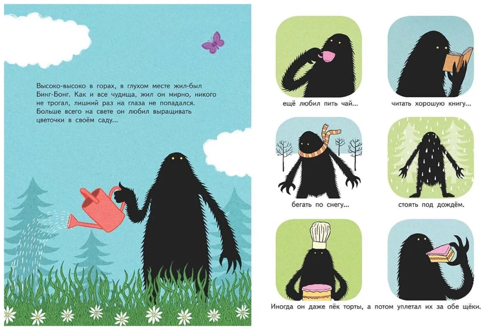 Книга "Жил-был Бинг-Бонг" от Криса Джаджа рассказывает трогательную и добрую историю о необычном существе, живущем в горах вдали от большой цивилизации. Бинг-Бонг - мирный и добрый монстр, который больше всего на свете любит выращивать цветы в своем саду, пить чай, читать и гулять по природе. Иногда он даже печет торты, наслаждаясь простыми радостями жизни.