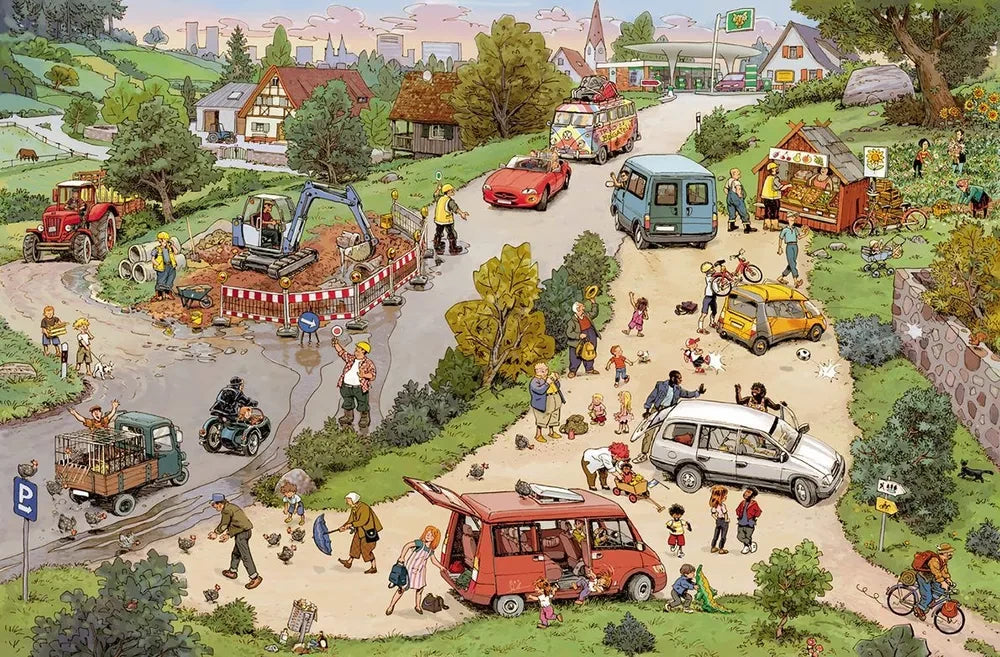 Книга "За городом" авторов Доро Гёбель и Петер Кнорр приглашает детей и их родителей окунуться в увлекательный мир загородной жизни через серию ярких иллюстраций. В этой книге без слов передается множество сюжетов из повседневной жизни за городом, где оживают фермы, стройки, пикники и вечерние гуляния.