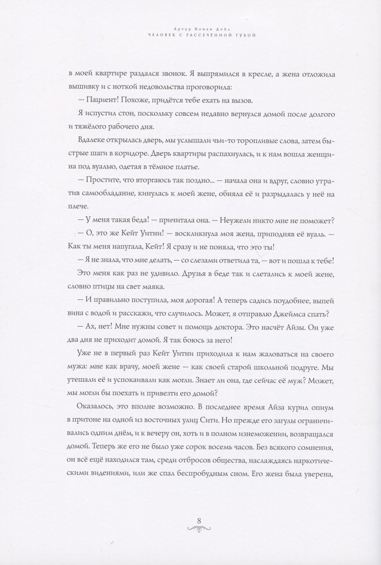 Перед вами издание классического рассказа Артура Конан Дойла "Человек с рассечённой губой" из серии "Приключения Шерлока Холмса". Эта книга в изысканном оформлении художника Антона Ломаева позволит погрузиться в атмосферу викторианского Лондона, восхититься продуманными деталями иллюстраций и окунуться в захватывающий детективный сюжет.