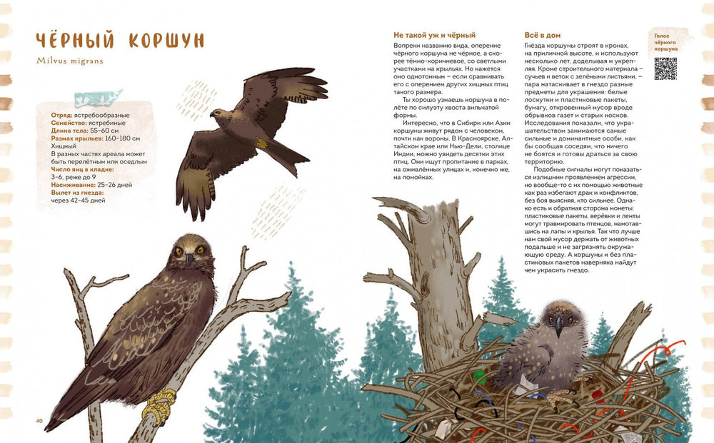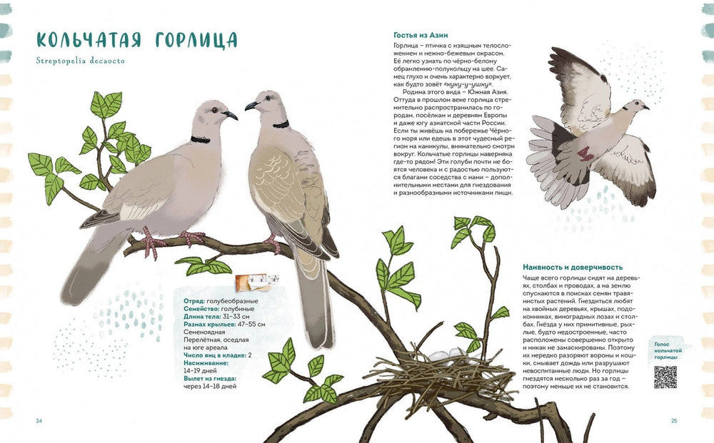 Издание содержит множество ярких иллюстраций и полезной информации о повадках птиц, о том, как они гнездятся и выкармливают потомство. Помимо этого, вы найдёте советы по зимнему подкорму птиц и что делать, если птенец выпал из гнезда. В книге подробно описаны голоса и характерные особенности разных видов, что сделает наблюдение за птицами ещё более увлекательным.