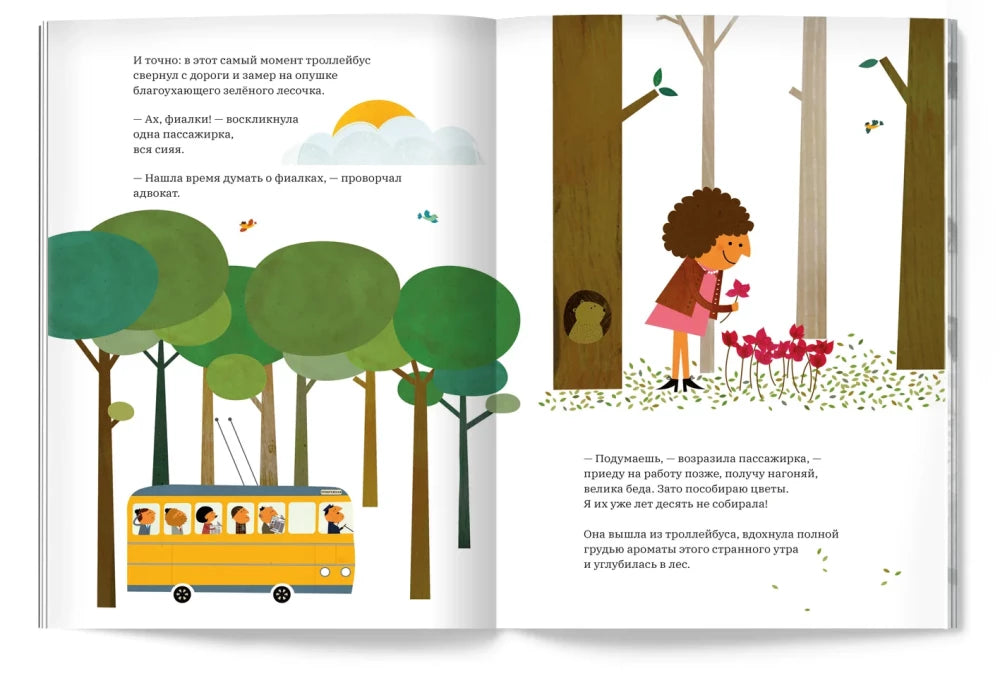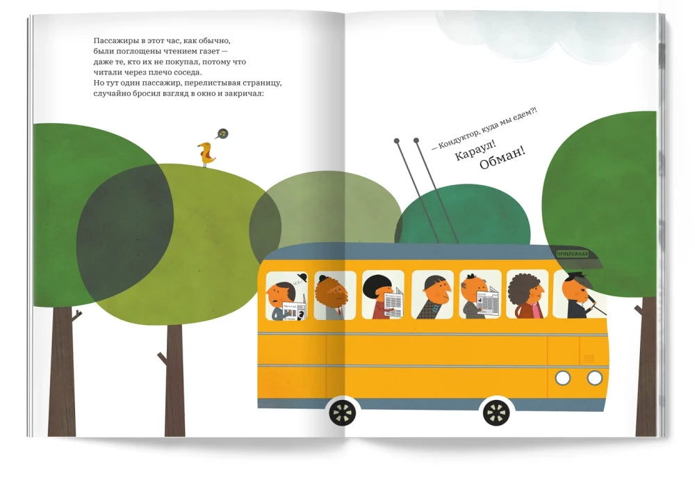 В этой книге читатели встретят разнообразных пассажиров, каждый из которых погружён в свои мысли и чтение газет, пока один из них неожиданно не воскликнет, прервав привычный порядок. С этого момента начинается увлекательное приключение по дорогам и лугам, которые описаны с яркими образами и динамикой, побуждающей воображение ребёнка развиваться.