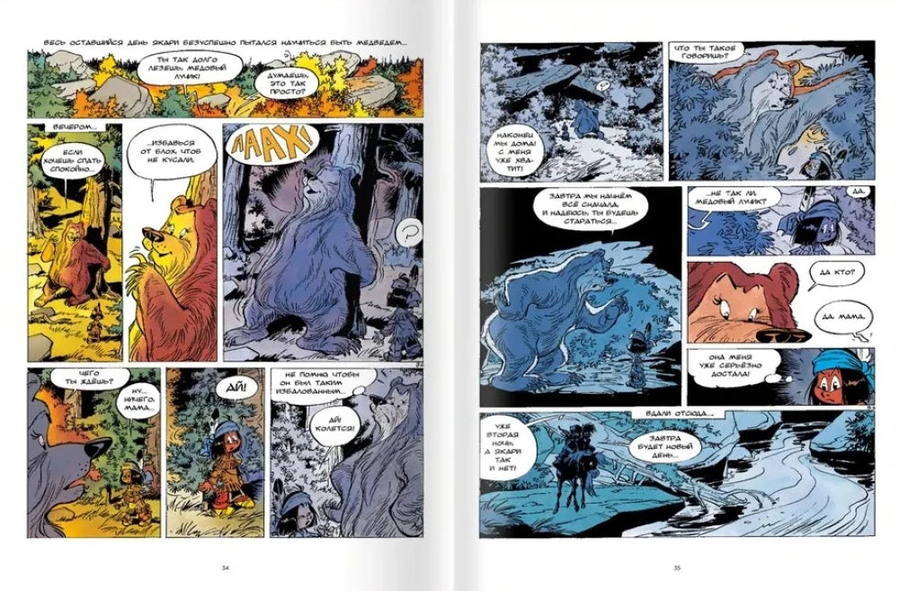 Издание обладает твердым переплётом и большим форматом 287х217 мм, что делает чтение удобным и приятным. Страницы наполнены яркими и выразительными иллюстрациями, которые погружают в атмосферу приключений вместе с маленьким героем Якари и его необычными друзьями – говорящими медведями и лошадью.