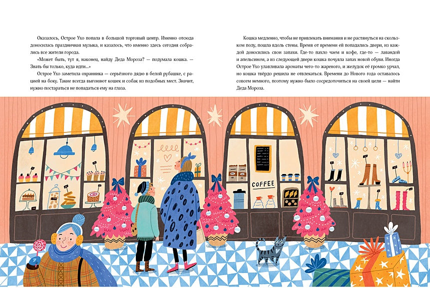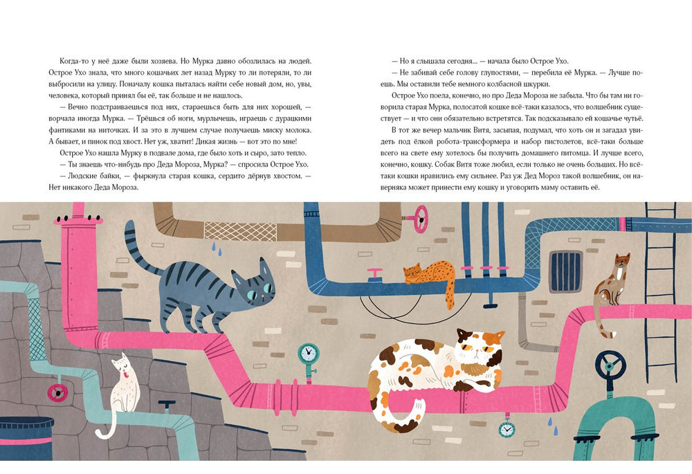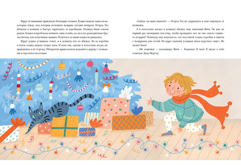 Главная героиня - полосатая серая кошка Острое Ухо, которая ищет настоящего Деда Мороза, чтобы загадать заветное желание. Вместе с ней читатель отправится в зимние дворы и большие торговые центры, познакомится с городскими жителями и почувствует атмосферу зимних праздников.