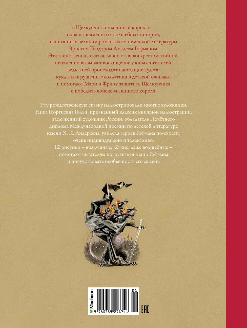 В этой изысканной книге в твердом переплете представлена классическая сказка Эрнста Теодора Амадея Гофмана "Щелкунчик и Мышиный король" с яркими и живыми иллюстрациями Илзе Кралы. Великолепные картинки помогают читателю окунуться в волшебный мир приключений, где добро борется со злом, а отважный Щелкунчик и храбрая принцесса сталкиваются с мышиным королем и его подданными.