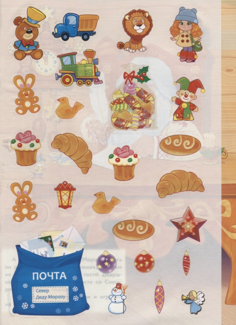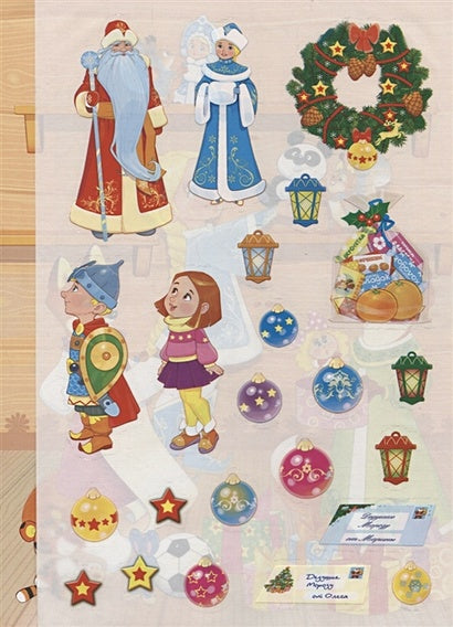 На каждой странице дети встретят Дедушку Мороза, Снегурочку и сказочных друзей, смогут прикреплять наклейки с новогодними украшениями, подарками и игрушками, дополняя праздничные сцены и создавая свои собственные истории.