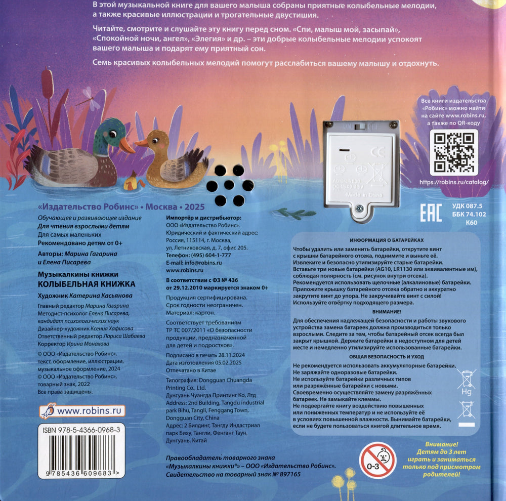 Художественное оформление выполнено с любовью, что делает книгу не только музыкальной, но и эстетически приятной для малыша. Крепкий твердый переплет обеспечивает долговечность книги, а встроенный музыкальный блок с кнопками легко включается и выключается, что очень удобно для родителей.