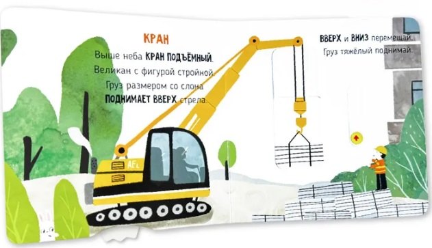 Ребята увидят, как мощный бульдозер расчищает площадку, как кран поднимает тяжелый груз высоко в небо, а асфальтовый каток работает над ровностью дорожного покрытия. Простые и ритмичные стихи помогут детям легко запомнить названия техники и понять их назначение.