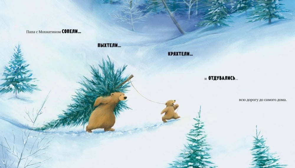 Книга "А Новый год скоро?" авторства Джейн Чапмен – это увлекательная история для самых маленьких читателей, которая рассказывает о подготовке к самому волшебному времени года. Главные герои – папа-медведь и его малыш Мохнатик – с трогательной нежностью и забавными приключениями готовятся к встрече Нового года, выбирая и наряжая ёлку, несмотря на капризы погоды и трудности зимнего пути.