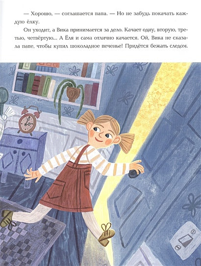Книга "Непослушная елка" рассказывает про веселые приключения девочки Вики и ее волшебных елочек, которые сами качаются и играют вместе с ней. Эта доброжелательная история показывает, как ребенок общается с новогодними украшениями и как малышке приходится догонять елочку, чтобы получить шоколадное печенье.