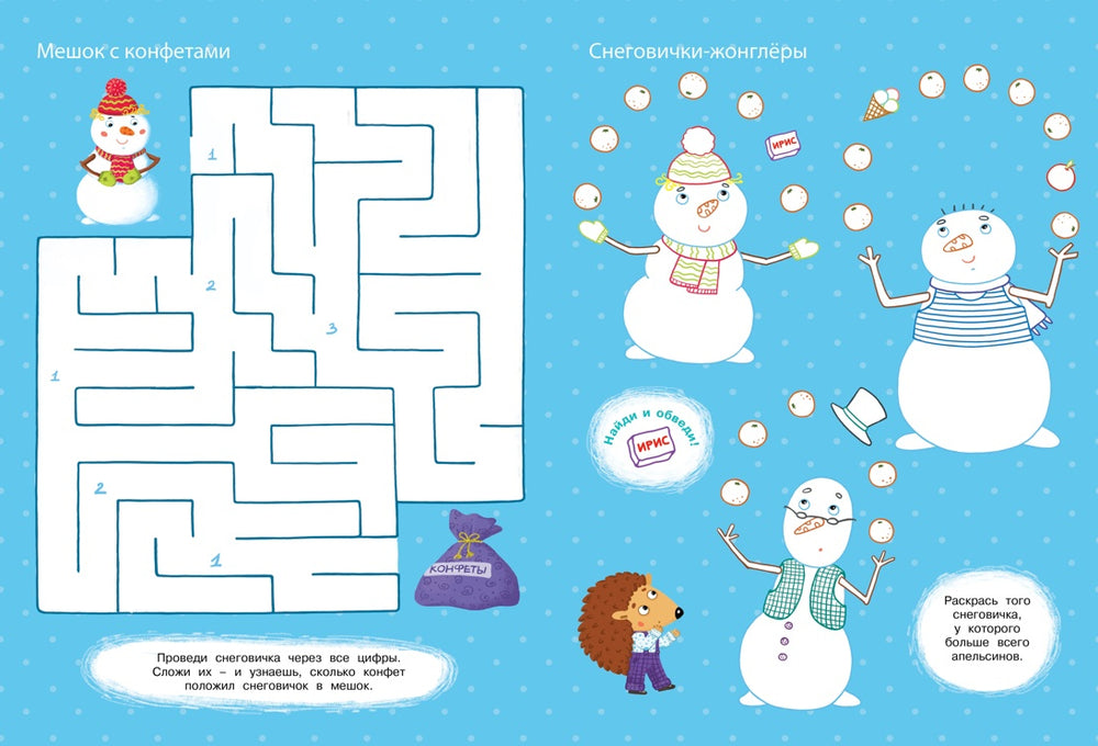 Присоединяйся к неугомонным снеговичкам! Проходи лабиринты, ищи спрятанные слова, делай новогодние украшения и много других интересных заданий.