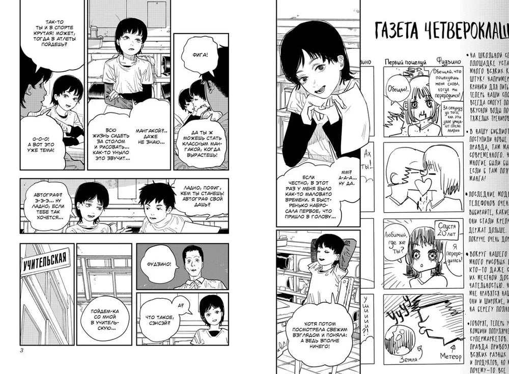 Сюжет разворачивается в школьной среде и рассказывает о буднях учеников, их дружбе и творческих поисках. Герои создают школьную газету, рисуют комедийные «ёнкомы» и обсуждают свои мечты и планы на будущее. Оригинальный стиль и теплая атмосфера произведения делают чтение увлекательным и живым.