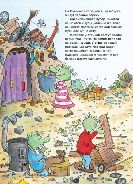 В книге "Огрики из Грязьбурга" Эрхард Дитль рассказывает увлекательную и забавную историю о зеленых существах, которые живут на Мусорной горе в городе Грязьбург. Эта веселая сказка познакомит детей с необычными героями - огриками, которые очень любят мусор и совсем не боятся грязи.