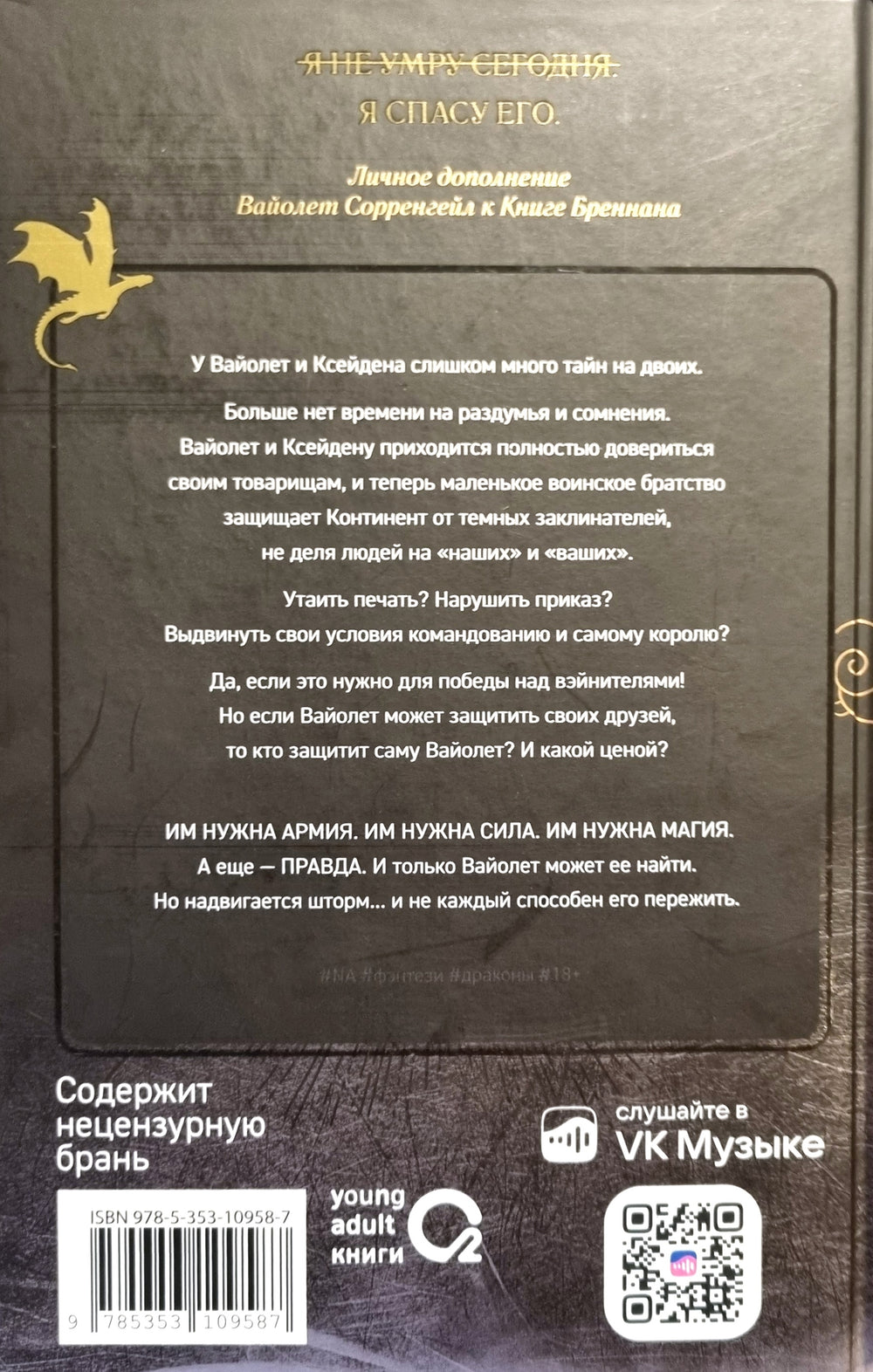 Вайолет и Ксейден таят слишком много секретов, и времени для сомнений больше нет. Им предстоит полностью довериться своим товарищам, чтобы маленькое воинское братство смогло защитить Континент от темных заклинателей, не разделяя людей на «своих» и «чужих».