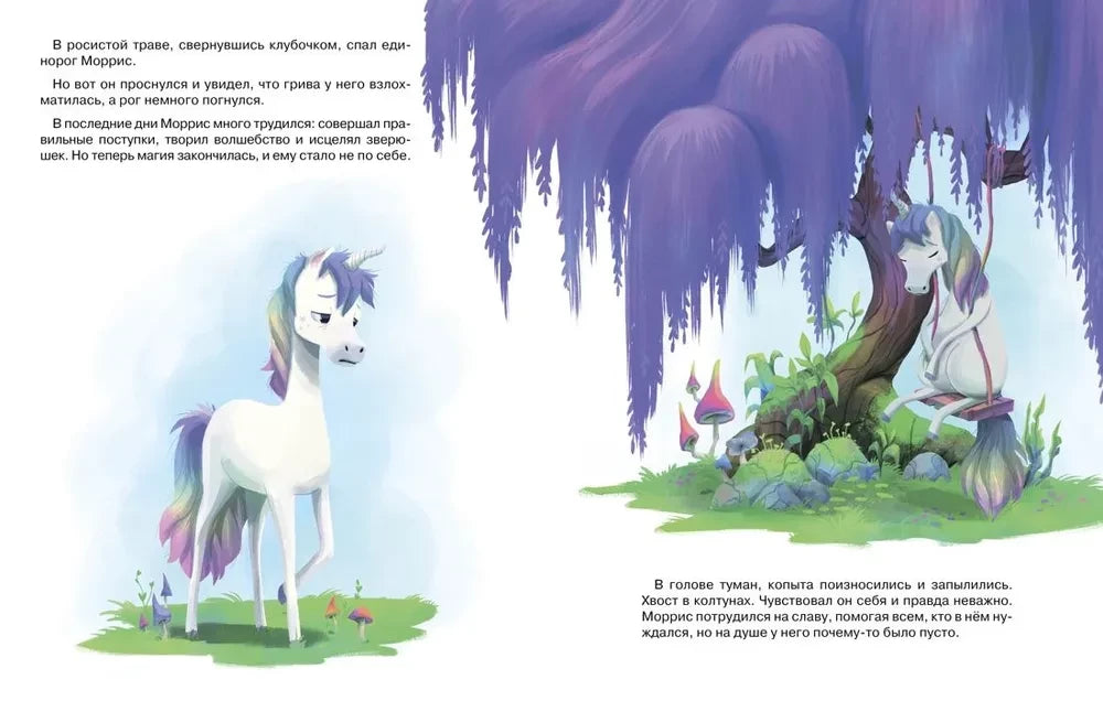 Главный герой, единорог Моррис, трудился много дней, помогая другим и творя волшебство, но однажды он почувствовал пустоту в душе. История учит малышей справляться с грустью и находить радость внутри себя.