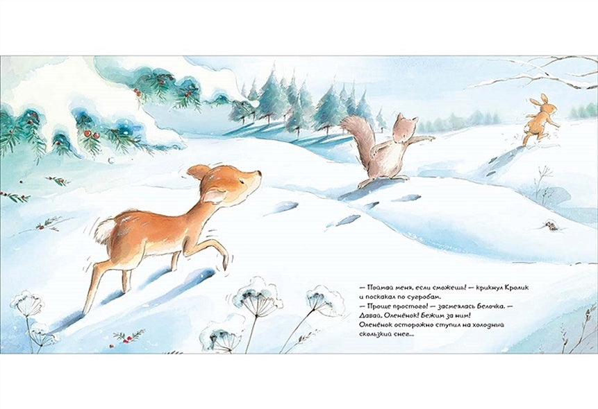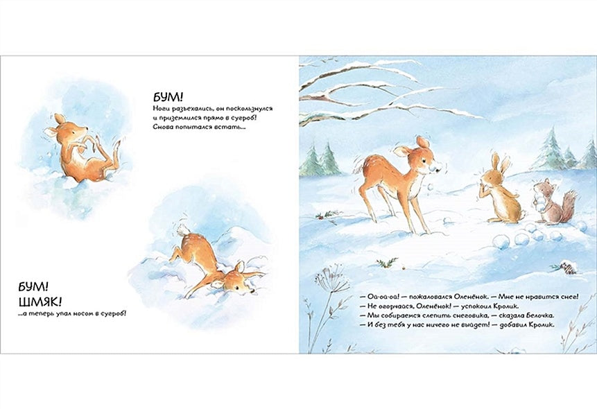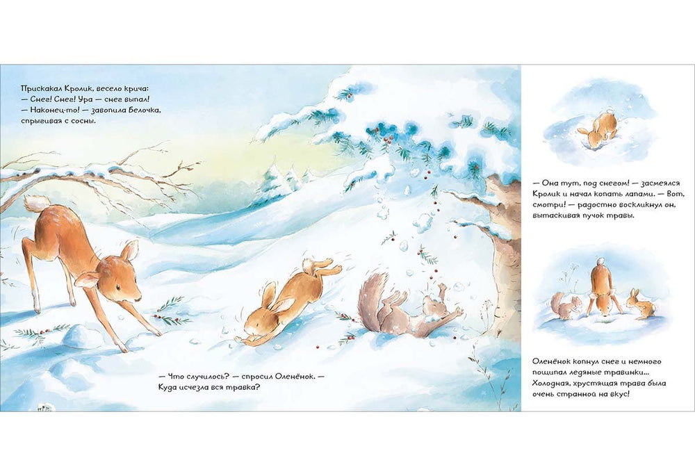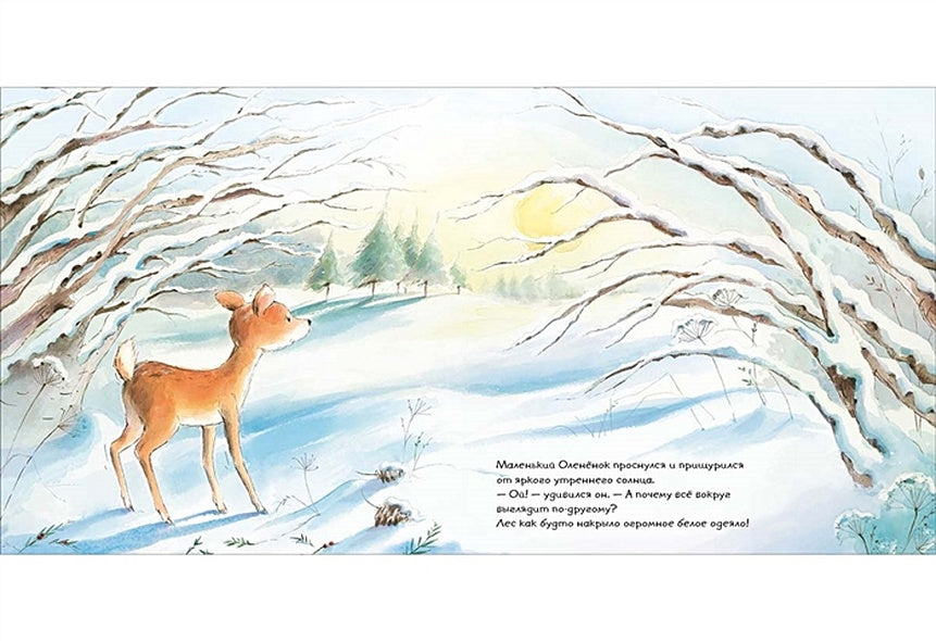 Это издание прекрасно подходит для знакомства малышей с природой и сменой времён года, расширяя их кругозор и развивая наблюдательность. Тёплые иллюстрации и простой, понятный текст рассказывают о первых шагах оленёнка на скользком снегу, его дружеских играх и забавных приключениях в зимнем лесу.