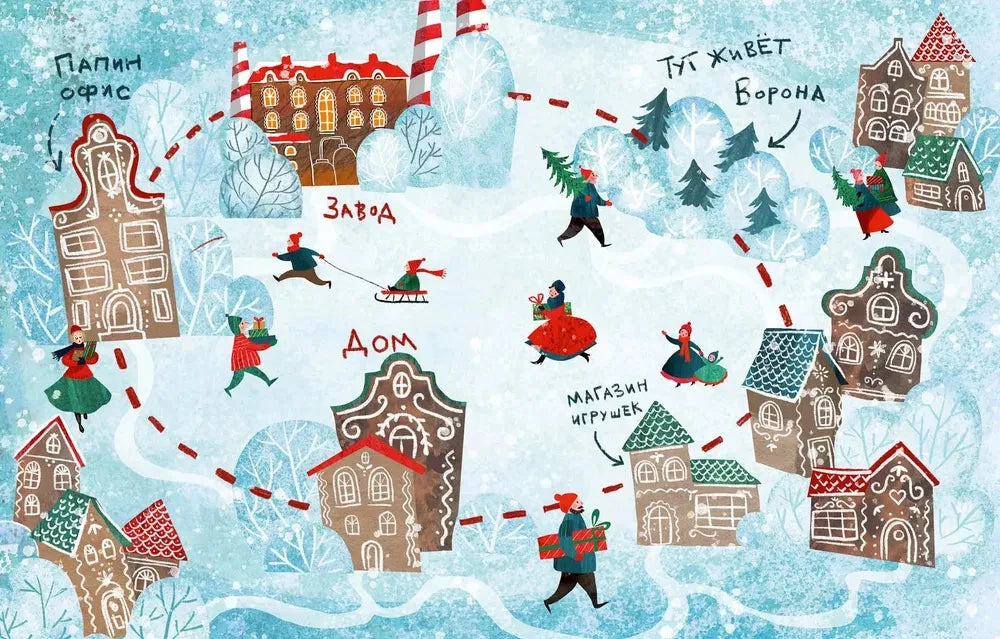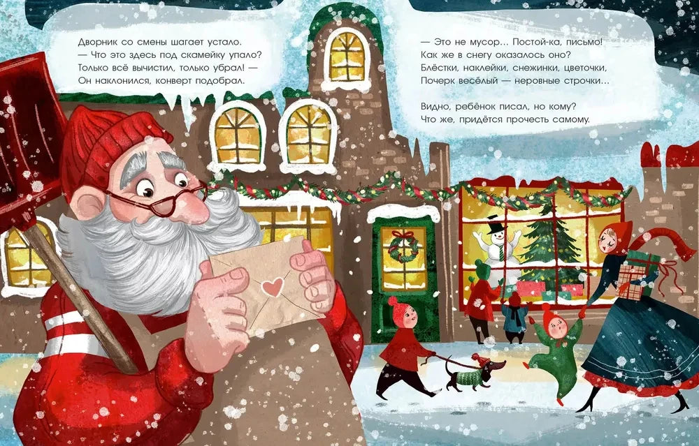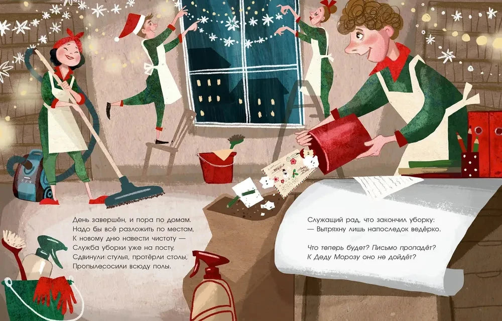 Издание с твёрдым переплётом, форматом 280х220 мм и 24 страницами идеально подходит для детей, которые только начинают знакомиться с чтением. В книге тщательно продуман сюжет, который рассказывает о том, как новогоднее письмо путешествует по разным местам: офису, заводу, магазину игрушек и дому.