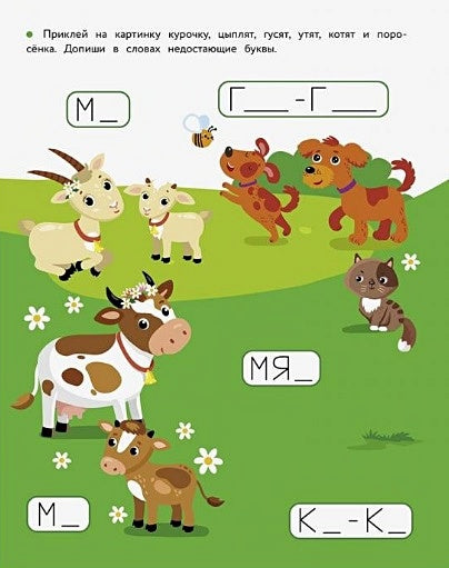 Особенность издания - наличие 48 ярких наклеек, которые можно использовать для дополнения заданий, делая процесс обучения более увлекательным и наглядным. Ребенок сможет приклеивать наклейки на картинки с животными и дописывать недостающие буквы, тем самым развивая внимательность и мелкую моторику.