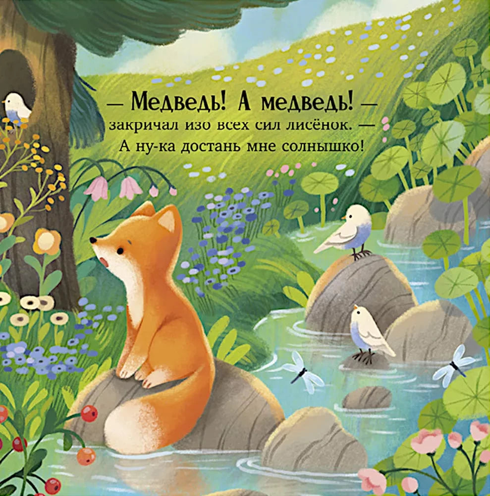 Лисёнок зовёт на помощь медведя, пытаясь достать солнышко и дотянуться до птички, но у него не сразу всё получается. Благодаря поддержке медведя, который приходит к нему на помощь, маленький герой понимает, что мама всегда рядом, даже когда её нет рядом физически.