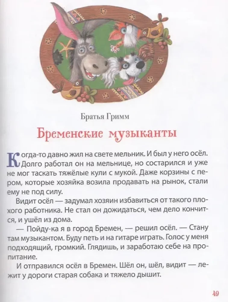В книгу входят любимые всеми «Бременские музыканты», «Петушок – золотой гребешок», а также сказки о животных, которые учат доброте и дружбе. Иллюстрации красочные и живые, что привлечёт внимание малышей и сделает чтение ещё интереснее. Удобный твердый переплёт и крупный шрифт обеспечивают комфортное пользование книгой даже для самых маленьких читателей.