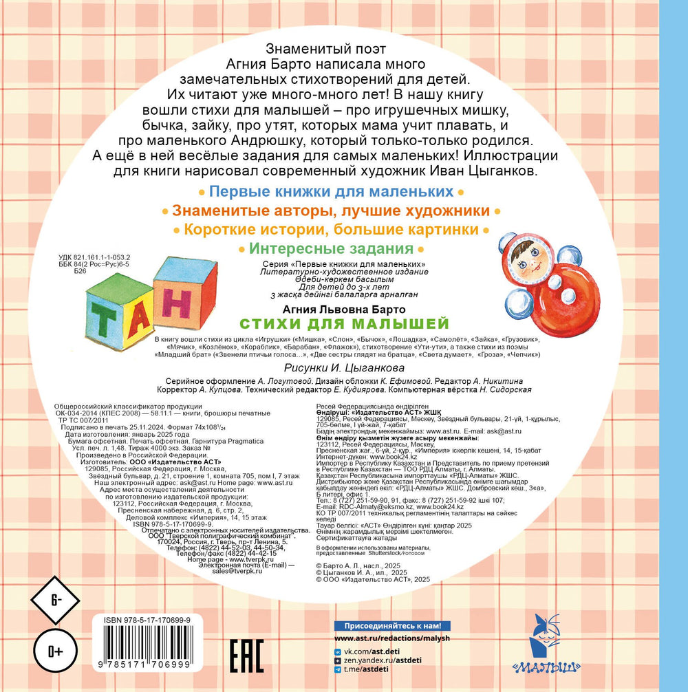 Книга А. Барто «Стихи для малышей» из серии «Первые книжки для маленьких» - это яркое и увлекательное издание, созданное специально для самых маленьких читателей.