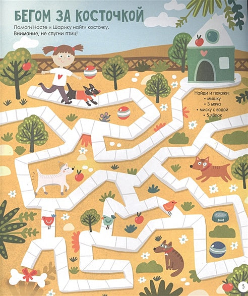 Каждая игра сопровождается забавными героями и интригующими заданиями, такими как поиск дорожек к косточке, мышке или мячикам. Яркие иллюстрации и понятный формат делают книгу доступной и интересной для малышей.