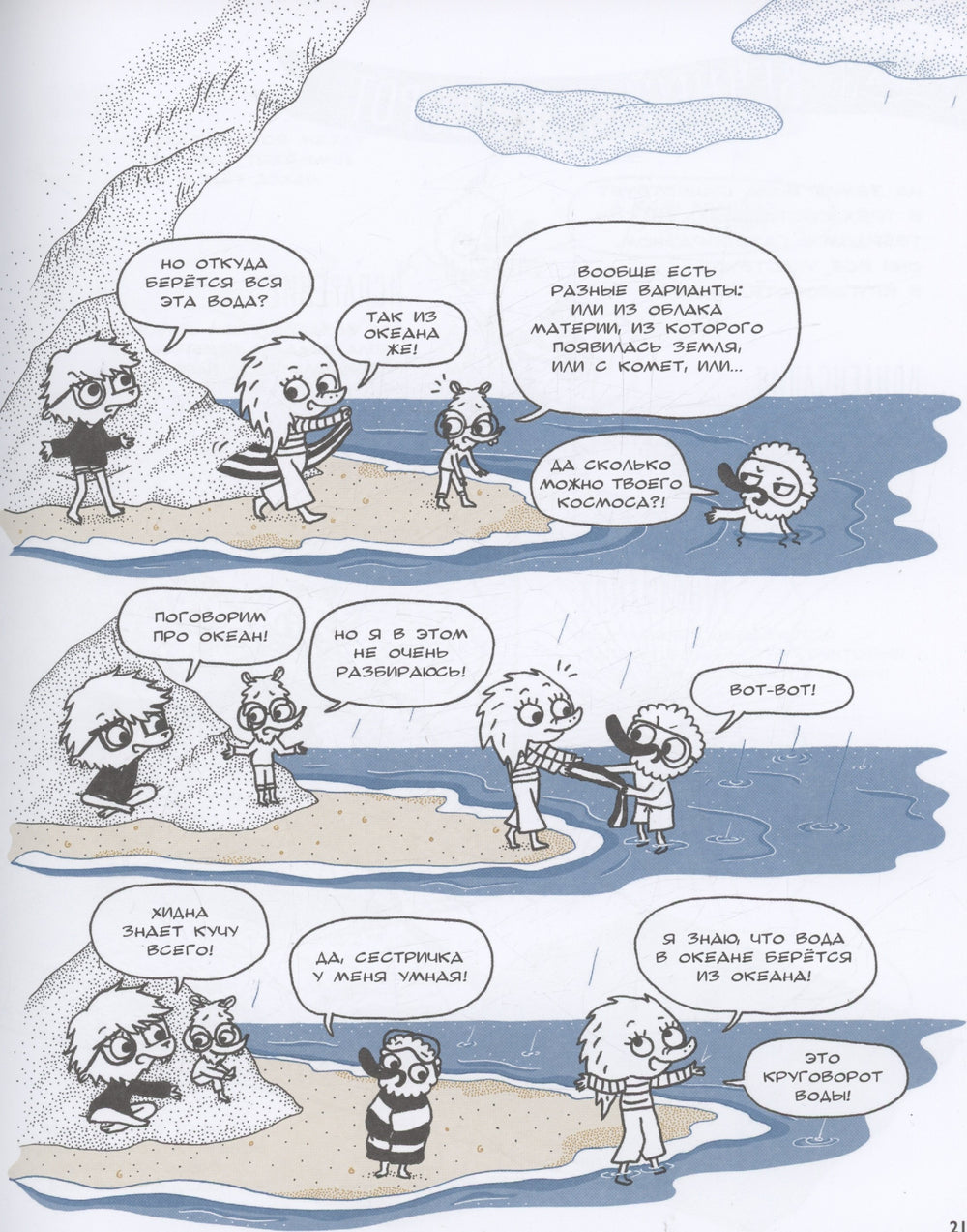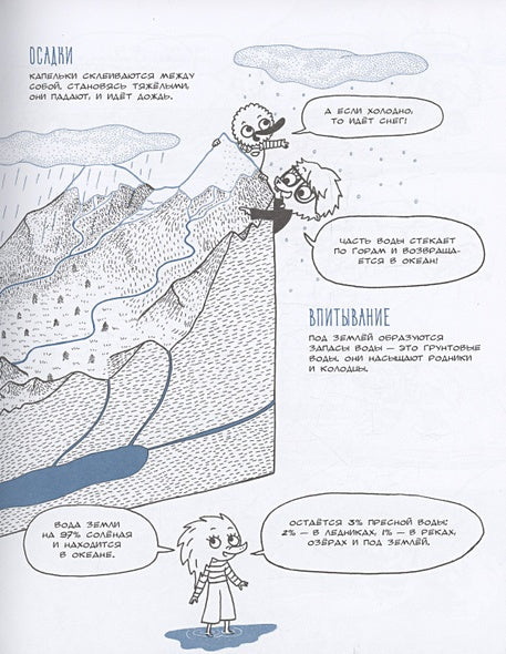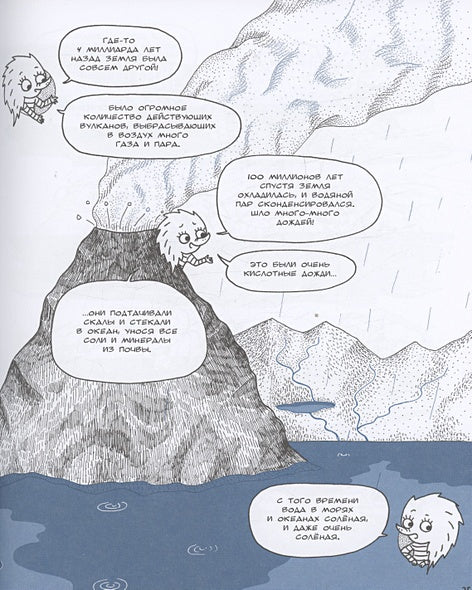 Вы познакомитесь с историей Земли и океанами, начиная с миллионов лет назад, узнав, как вулканы повлияли на формирование морской воды и как осадки и грунтовые воды влияют на круговорот воды на планете. Книга подробно объясняет процессы осадков, впитывания и солености морей, что поможет понять важность океанов для жизни на Земле.