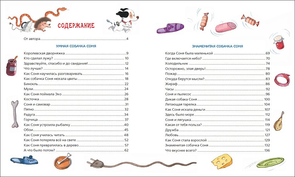 Книга "Все-все-все об умной собачке Соне" от автора А. Усачева подарит детям увлекательные и весёлые истории о милой и сообразительной собаке Соне. В сборник вошли дневники, забавные рассказы и загадки, которые познакомят юных читателей с удивительными приключениями собачки и её друзьями.