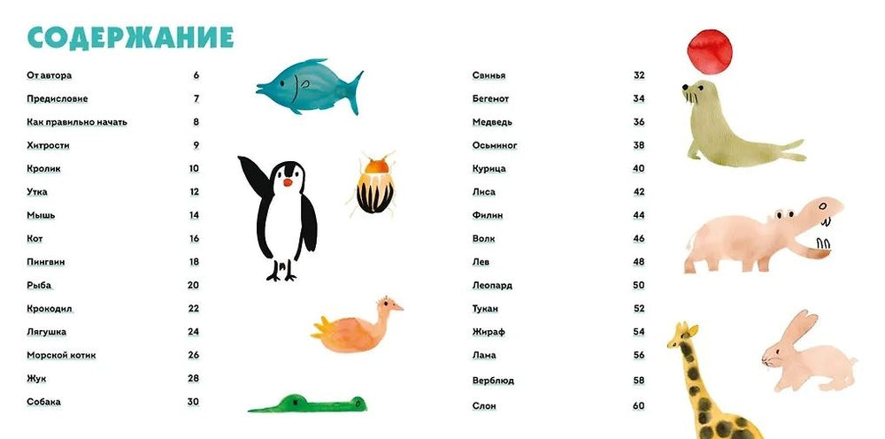 Эта книга познакомит тебя с простой и быстрой техникой рисования акварелью, благодаря которой можно создать настоящие шедевры всего за несколько минут. Несколько движений кистью – и на бумаге оживают самые разные животные: кролик, лягушка, утка, крокодил, медведь, лев и многие другие.