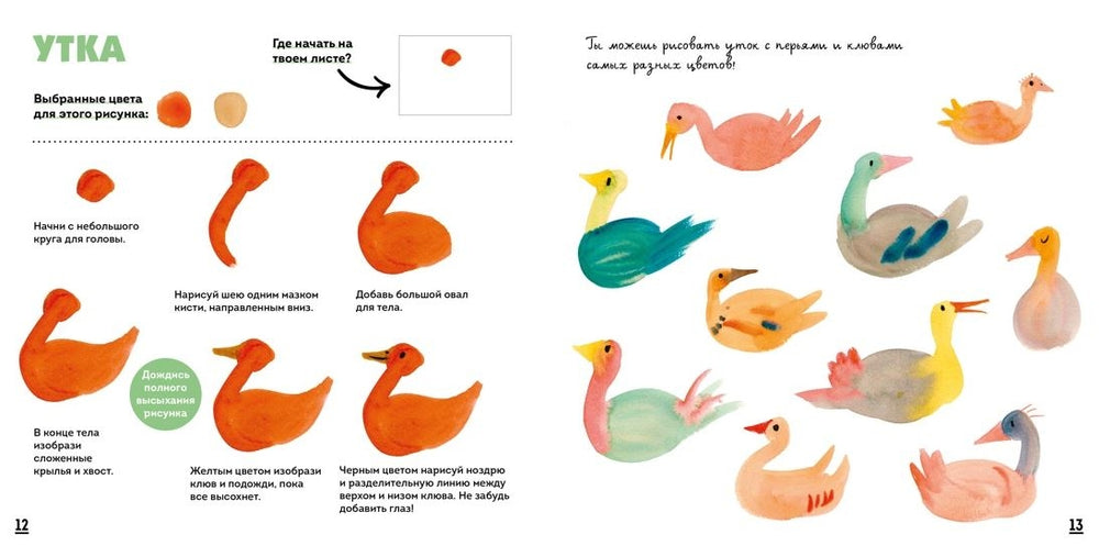 В книге собрано 26 пошаговых схем, которые дают свободу твоему воображению и помогут развить собственный стиль рисования. Здесь ты узнаешь все тонкости работы с акварелью: как правильно выбрать бумагу, кисть и краски, как наносить цвет и создавать детали с помощью чернил или фломастера.