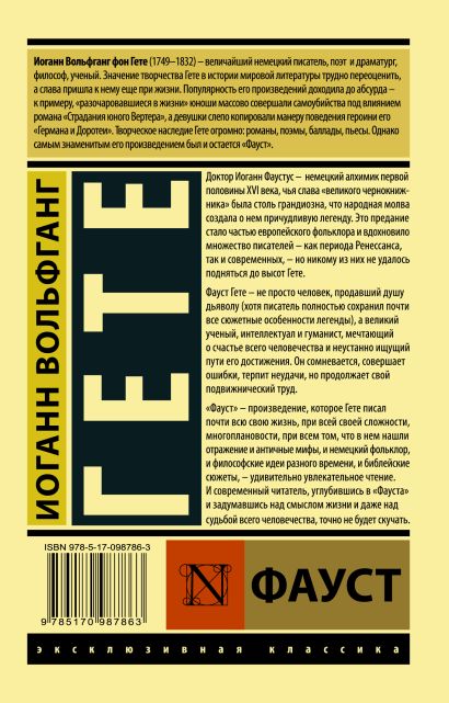 «Фауст» Иоганна Вольфганга Гете - один из величайших литературных шедевров мировой классики, который изменил ход мировой литературы. Гете, выдающийся немецкий писатель, поэт и философ первой половины XVIII века, в этом произведении олицетворил борьбу человека за знания и смыслы жизни, вплетая народные легенды, библейские сюжеты и античные мифы в единое целое.