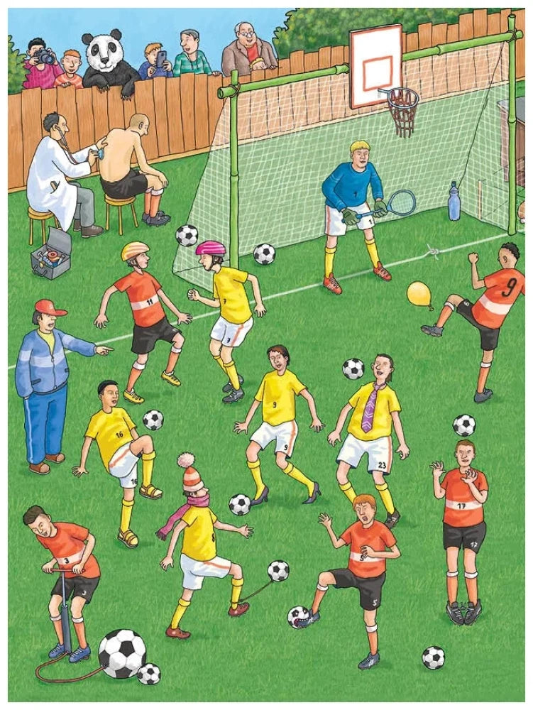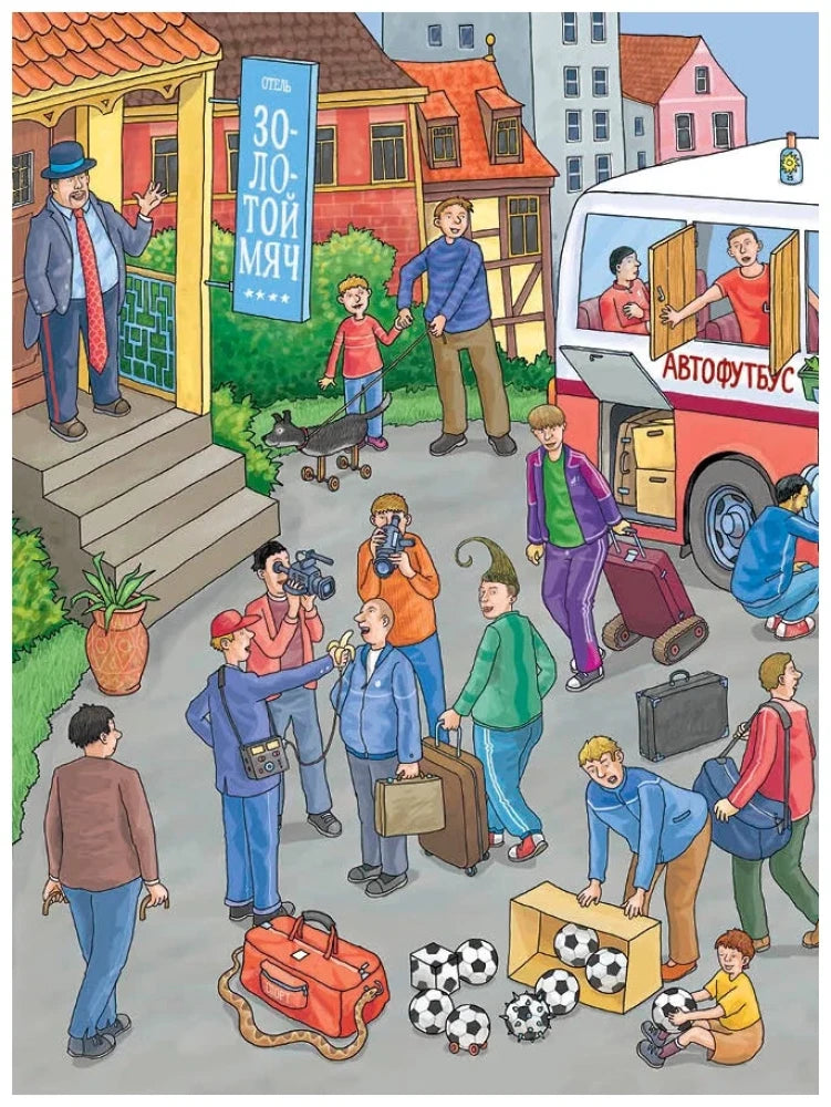 Книга "Футбольная перепутаница. Найди ошибки художника" автора Ахима Альгримма приглашает детей и взрослых окунуться в увлекательный мир футбола. На ярких и подробных иллюстрациях изображены сцены с футбольным матчем, тренировками и командными моментами, но с одной особенностью – в каждой картинке спрятаны ошибки, которые нужно найти.