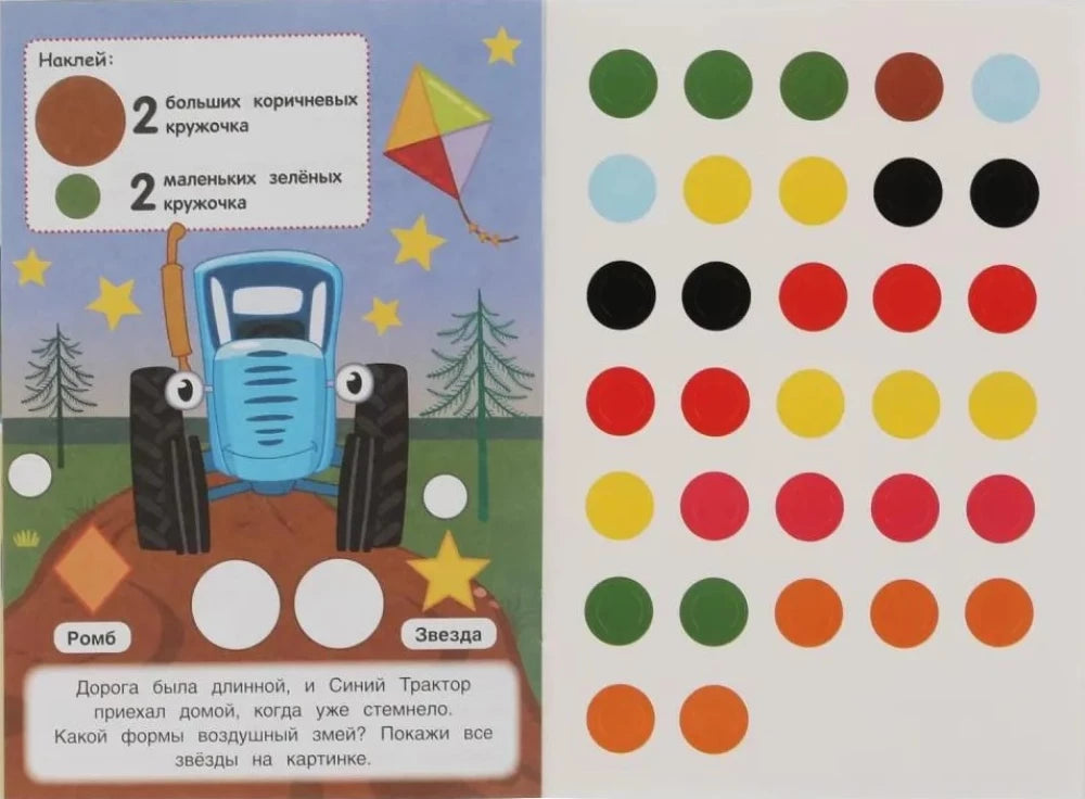 Познавайте цвета и формы вместе с любимыми героями из "Синего трактора"! Эта книга-игра содержит 50 многоразовых кружочков, которые помогут ребёнку развить внимание, мелкую моторику и навыки сопоставления.