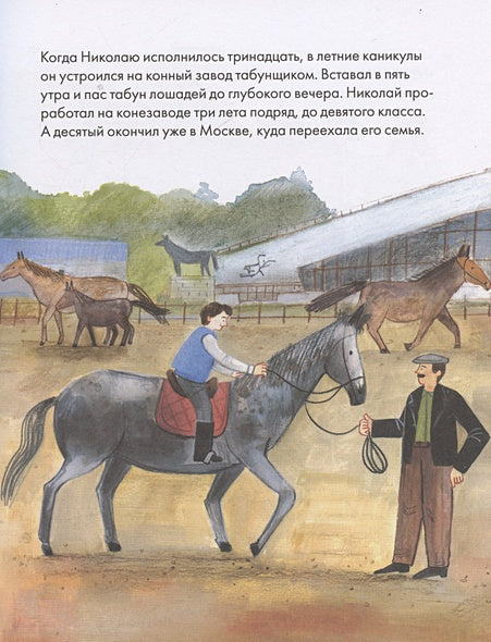 Впервые работая на конном заводе табунщиком с тринадцати лет, Николай ежедневно вставал в пять утра и ухаживал за лошадьми, совмещая труд с учебой до девятого класса. Позже он успешно окончил школу в Москве, куда переехала его семья.