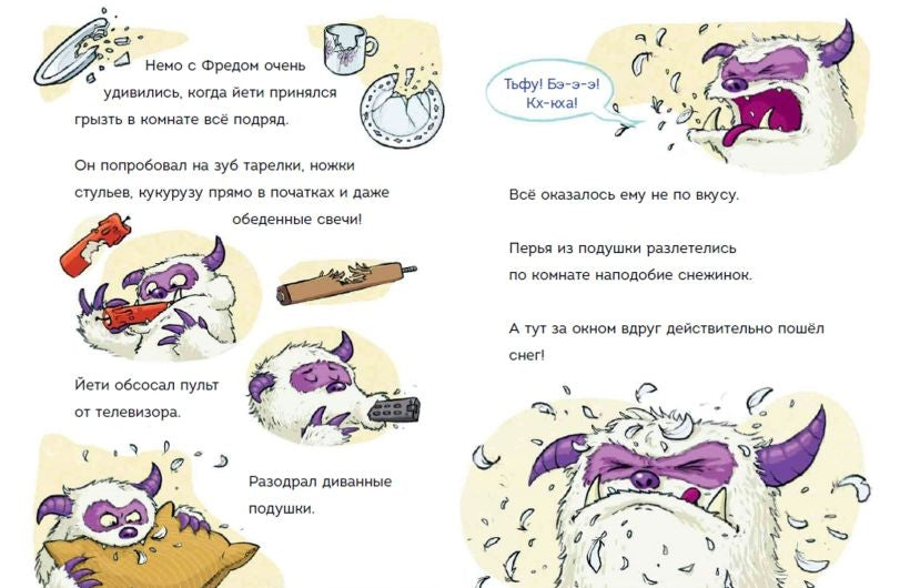 Сюжет наполнен юмором и фантастическими элементами: плюшевый монстр, способный вызвать снежную бурю, оживает на страницах и вовлекает читателей в необычные события. Книга состоит из 80 страниц, разделённых на небольшие главы, которые поддерживают интерес ребёнка и делают чтение увлекательным и лёгким.
