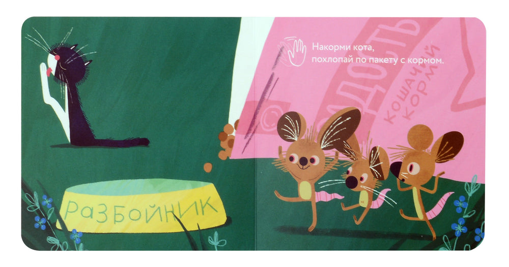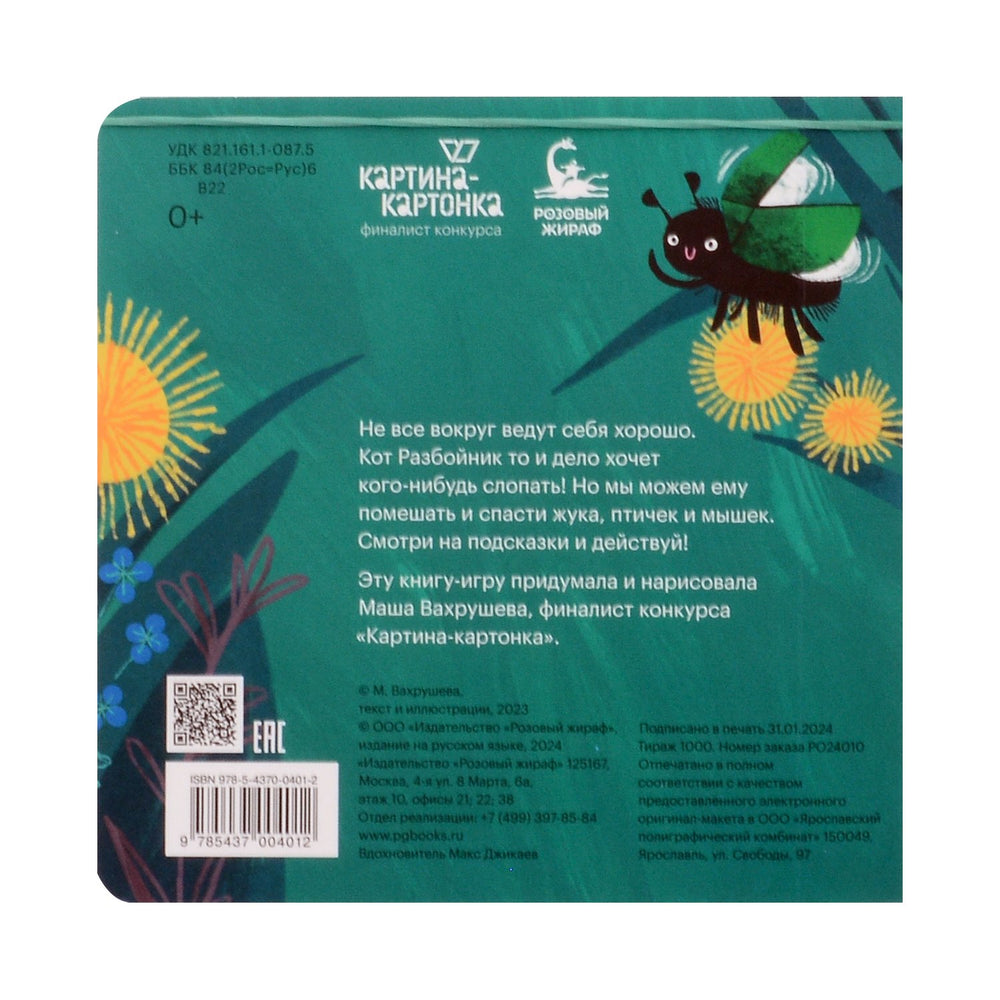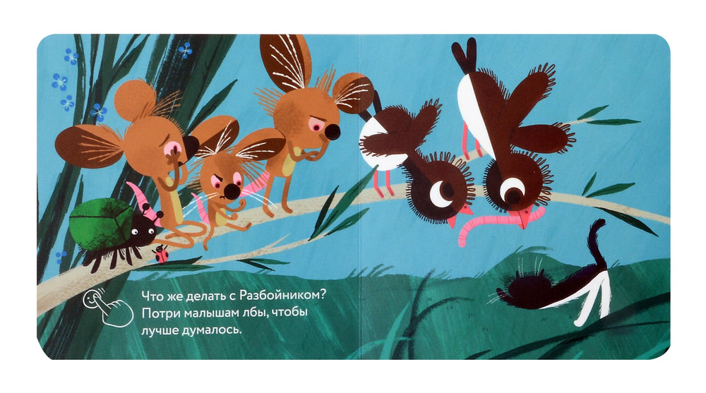 Книга "Эй, Разбойник!" - это увлекательная игровая история для самых маленьких, которая приглашает детей помочь спасти жука, птиц и мышат от хитрого Кота Разбойника. Вместе с персонажами малышам предстоит следовать подсказкам и активно участвовать в повествовании, чтобы не дать коту съесть никого из друзей.