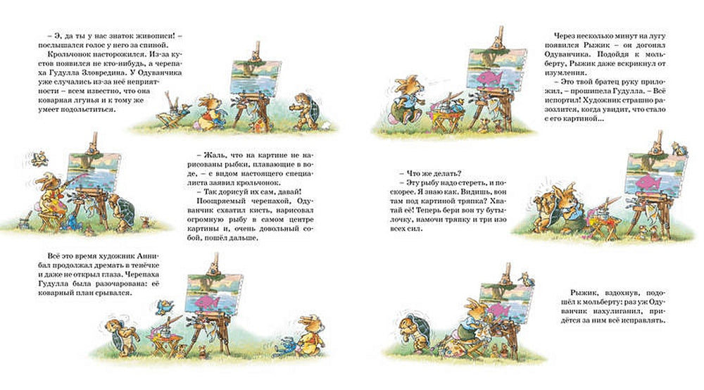 Очаровательные персонажи, живописные зарисовки и трогательные моменты из жизни кроликов помогут ребёнку развить интерес к искусству и творческому самовыражению. Эта книга с твёрдым переплётом формата 235х260 мм на 80 страницах станет отличным подарком, который будет радовать детей на протяжении долгого времени.