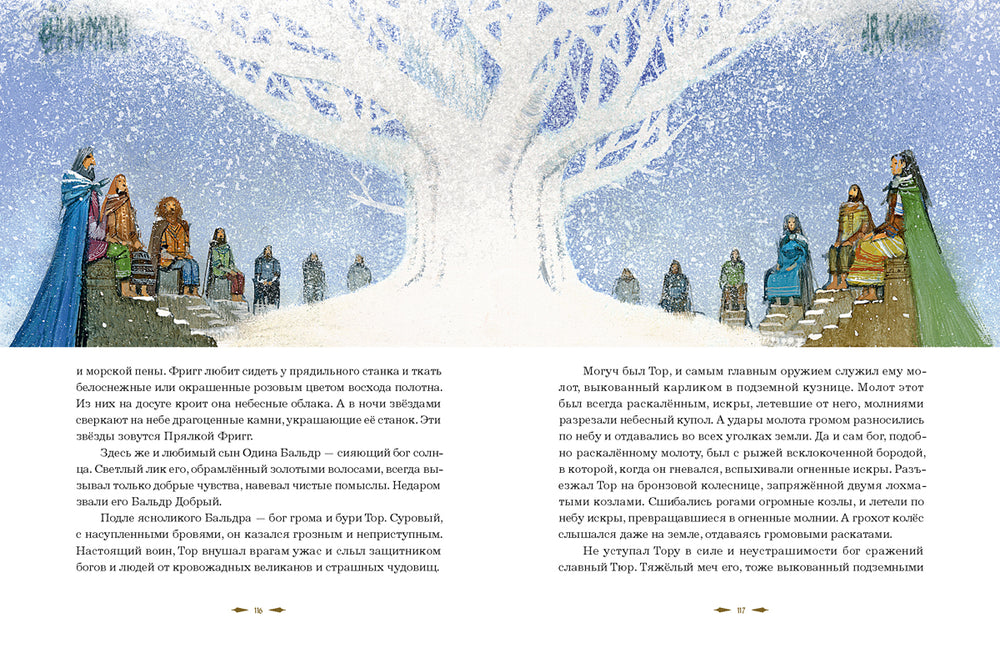 Издание выполнено в твёрдом переплёте, формат 210 x 280 мм обеспечивает комфортное чтение и впечатляющие иллюстрации, которые визуально дополняют текст и погружают в атмосферу тех древних времён. Страницы книги содержат рассказ о могучем Торе и его молоте, о богах света и подземных царствах, драконах и волшебниках, способных менять ход событий.