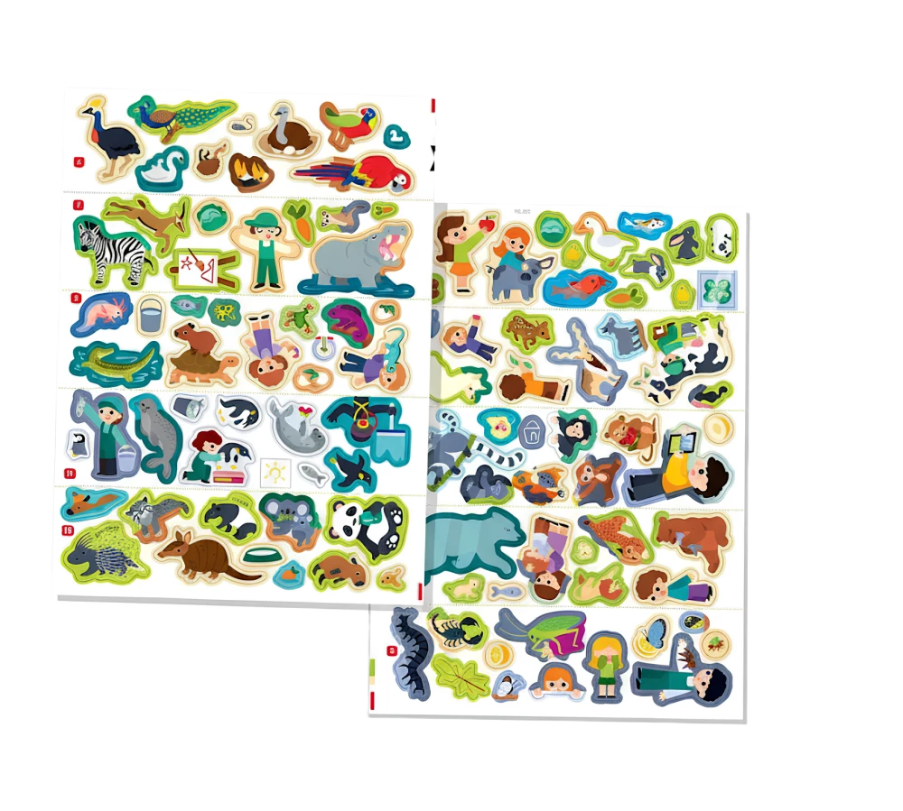 Книга включает в себя 100 многоразовых наклеек с изображениями животных и посетителей зоопарка, которые можно наклеивать и отклеивать сколько угодно раз. Это отличный способ познакомить детей с разнообразием живых существ, расширить их знания о животных и создать интерактивную игровую среду.