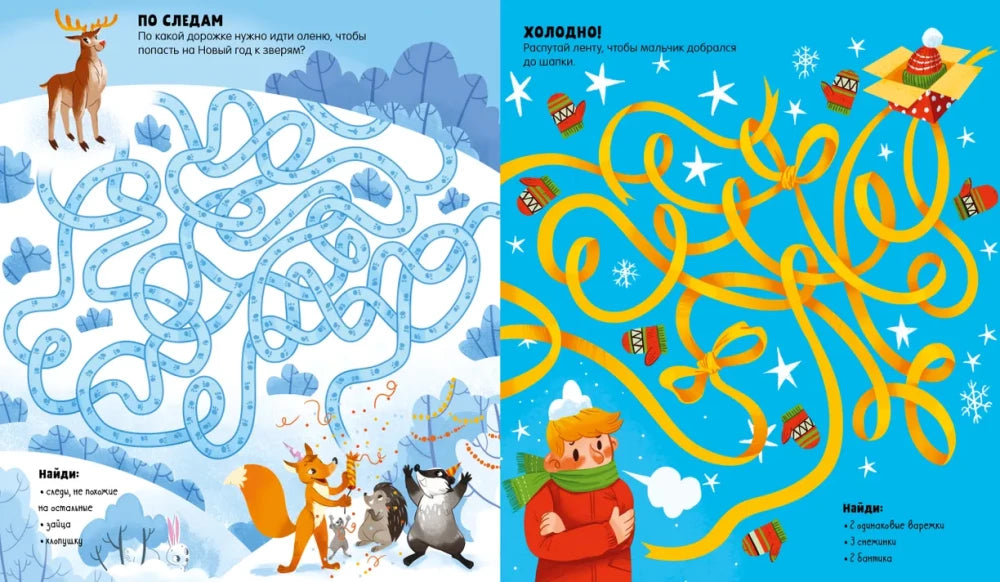 Этот сборник идеально подойдёт для детей, которые только начинают знакомиться с лабиринтами, а также станет отличным способом совместно провести время с семьёй, усиливая праздничное настроение и создавая уют.