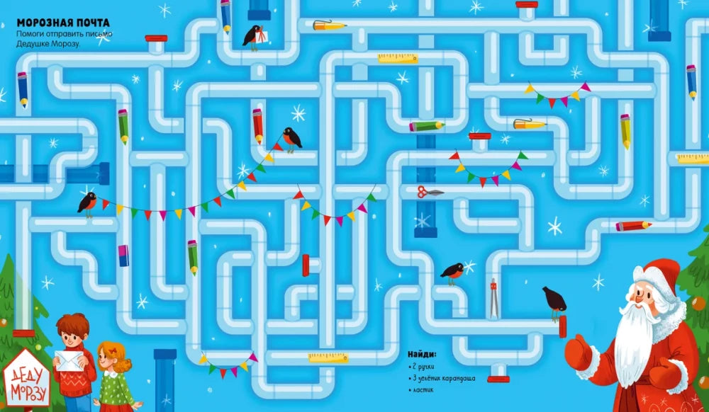 В книге вы найдете разнообразные задания-лабиринты – от поиска правильной дорожки для оленя к новогодним зверятам до проведения письма Деду Морозу через сложную систему труб. В процессе решения этих задач ребёнок тренирует внимание, мелкую моторику, а также учится анализировать ситуации и выбирать верные пути.